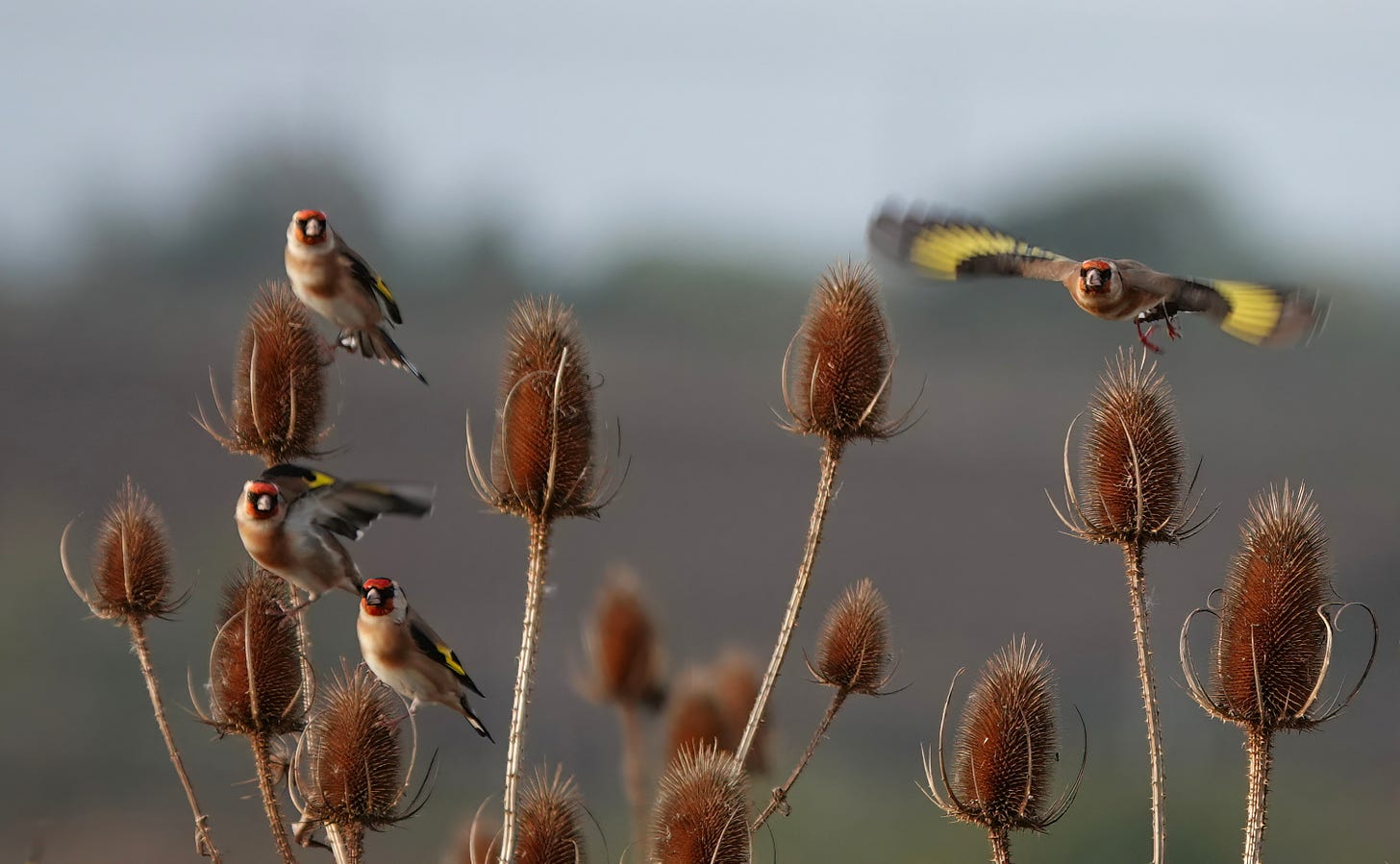 A flock of Goldfinches is aptly called a charm—and now here I am, charmed, wearing my Sparrow T-shirt and checking the notifications from my bird feeder camera in our backyard. Nope, just a squirrel again.