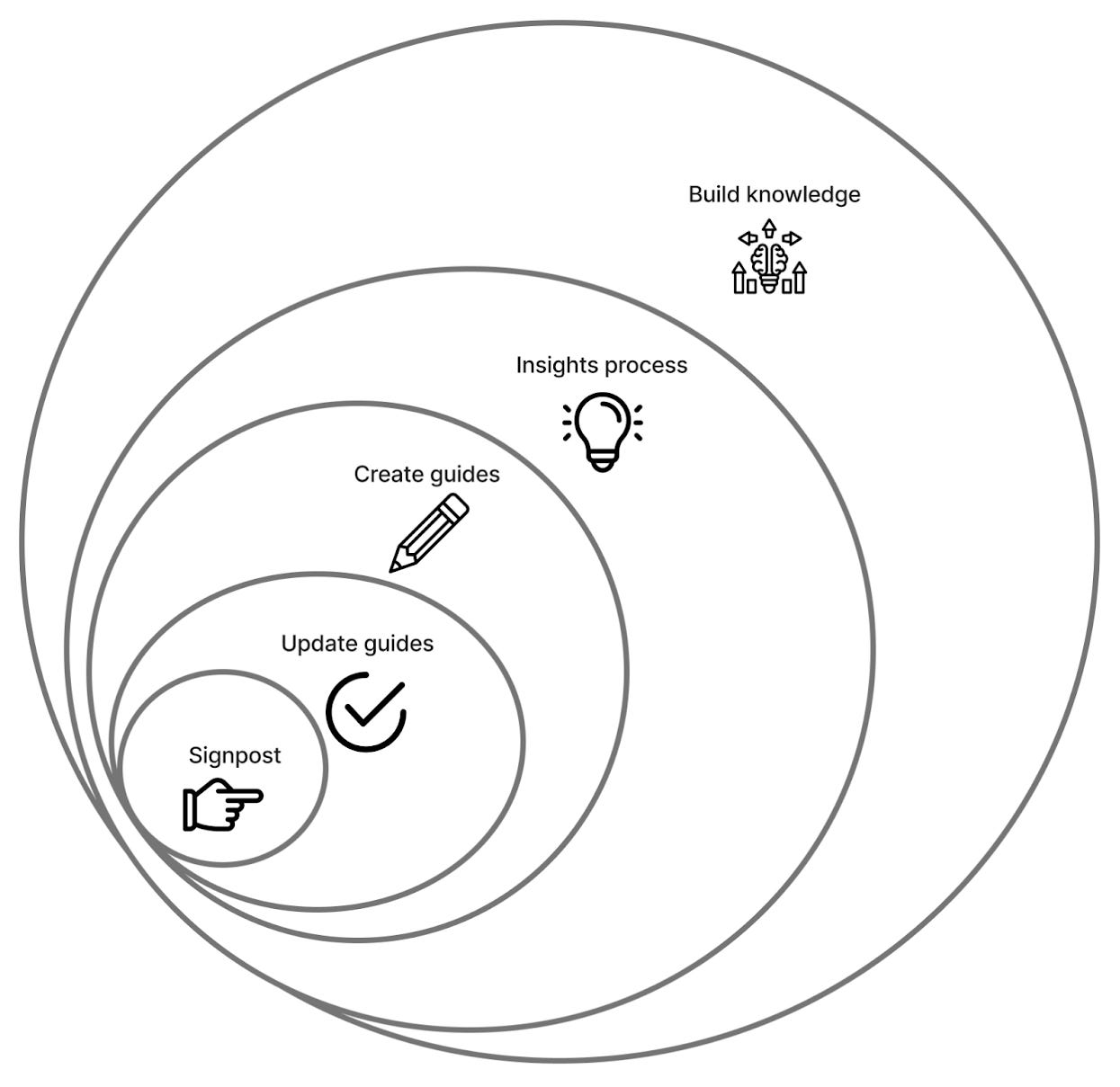 Knowledge Management. Single source of truth documentation for what we learn from the research and for how research is done; ranging from how templates, resources, and enablement materials are created and used to how the data repositories and insight library are structured, maintained, and accessed.