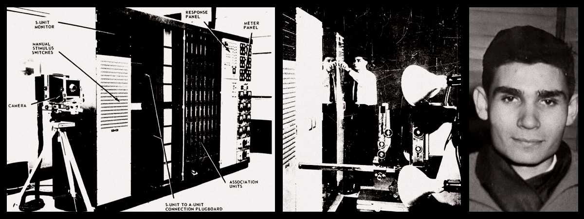 Circa 1959, my uncle Thomas Osborn (see Figure 1), a student at Cornell University, was hired by an American psychologist called Frank Rosenblatt, the father of machine learning. His job was to assemble, test, and run experiments on a large device called the Mark I Perceptron; recognized as the first artificial neural network device. The Perceptron was equipped with a grid of four hundred electronic “eyes” and processed crude snapshots of the letters of the alphabet. Instead of relying on a human to program the explicit definition of the alphabet, it physically adjusted its own internal paths until it taught itself how to recognise the letters. Where McCarthy’s “Dartmouth” system relied on deterministic rules written by humans, Rosenblatt’s Perceptron learned patterns from random examples in the machine, making it difficult to pinpoint how it worked based on rigid rules. (If you’re currently experimenting with AI, that may sound frustratingly familiar.)
